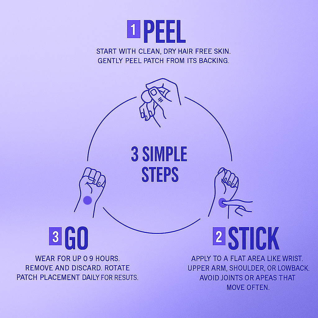 Struggling to maintain focus and mental clarity? Focus Patches are formulated with Vitamin B, nootropics, and adaptogenic botanicals to help sustain concentration throughout the day. Designed with a steady-release system, each patch provides continuous support for up to 8 hours—enhancing productivity, clarity, and alertness without sudden crashes. Convenient and effective, they’re your go-to solution for sharper focus.
